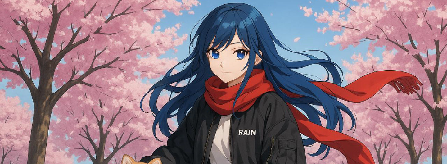 Our designs revolve around our mascot, Rain Chan, and she embodies the essence of 90s-style anime — she’s the OG streetwear influencer, with her blue hair and ocean eyes. Follow her on her journey where she dives into edgy goth moods but can also switch to laid-back homebody vibes.